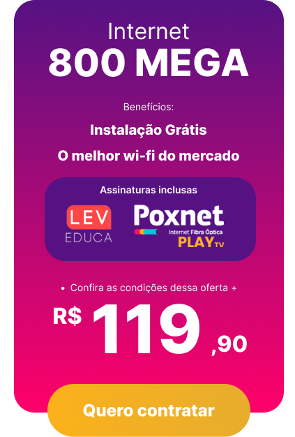 Clique em CONTRATAR AGORA, ou fale com um de nossos consultores via WhatsApp, e mude de vez para a POXNET Internet Banda Larga.